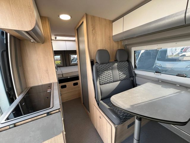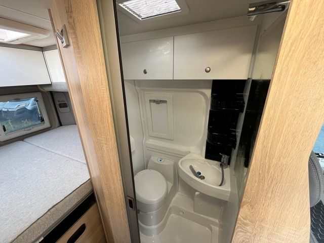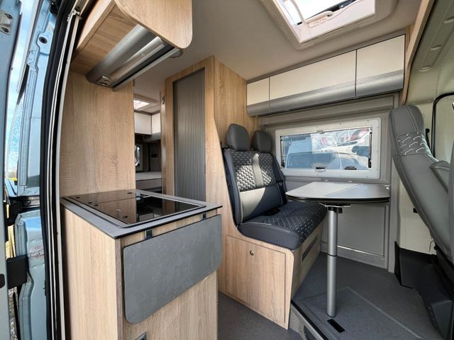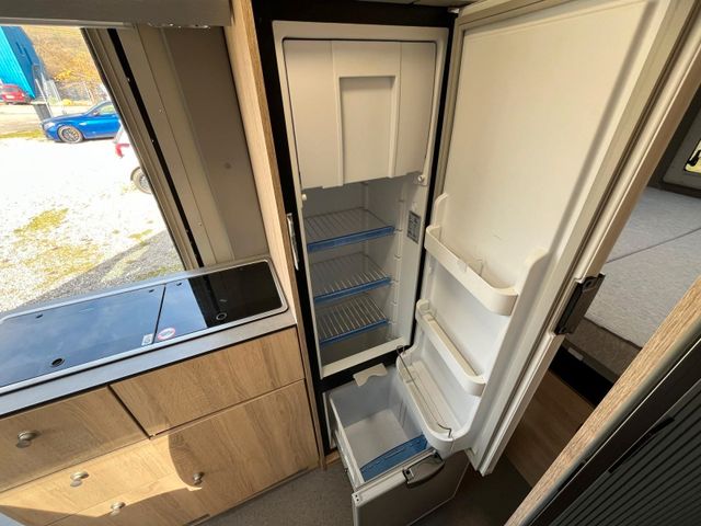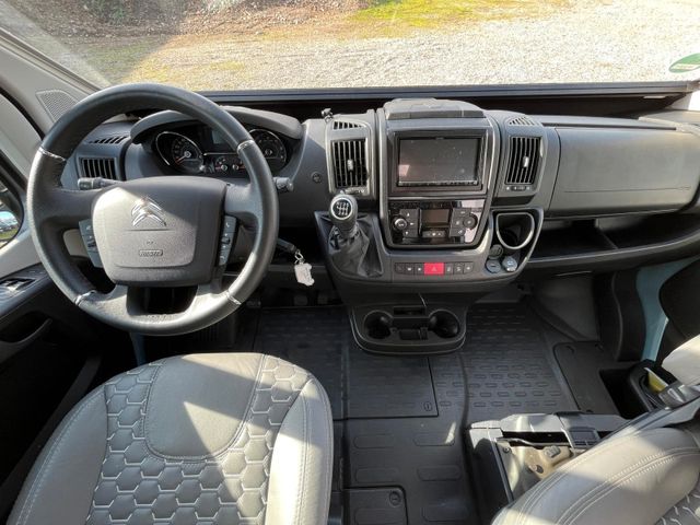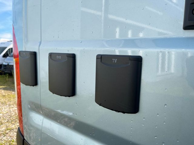 Lago Azurro Metallic,, Stoßfänger vorne in Wagenfarbe, Große Dachhaube, Sitzbezug Leder grau, Klimaautomatik, Spiegel elektr. anklappbar, Totwinkel-Assistent, Unterfahrschutz, Verkehrsschildererkennung, Spurhalteassistent, Fernlichtumschaltung, Dachhaube Bad 28x28 cm, Dachhaube hinten 70x50 cm, Dachhaube vorne 70x50 cm, Lamellentüre Bad, Heckschrank quer, 2. Wohnraumbatterie, Truma Diesel+ Elektro Heizung, Dieselheizung unter Sitzbank, Sitzheizung, Kühlschrank Vitrifrigo Twin Tower, Lampe zusätzlich bei Dinette, zwei Lampen zusätzlich am Bett, Steckdosensatz (USB, 12V, 220V) hinten über Bett rechts und im Laderaum, Steckdosensatz außen, Vorverkabelung Solar