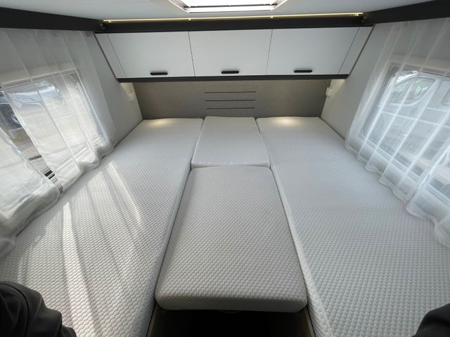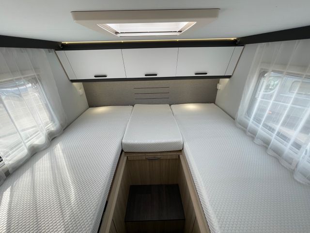 Serienpolster Ross, Isolierter + Beheizbarer Abwassertank, Airline Schienen Heckgarage, Doppel-DIN-Radio, RFK, Manuelle Heckstützen, Max-Van, Mono-Control, Trigas Alarm