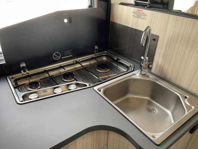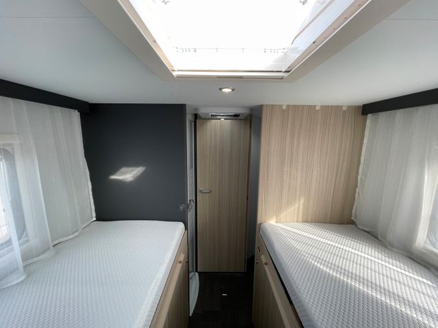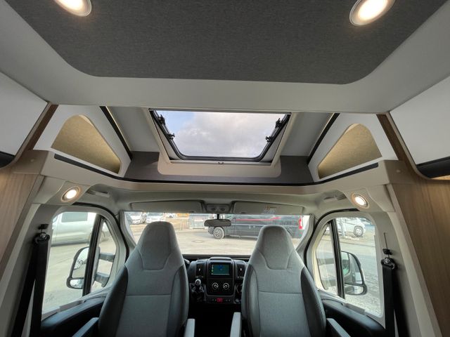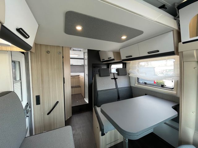 Polster "Ross", Airbag Fahrer+Beifahrer, ABS – Antiblockiersystem, ASR – Antriebsschlupfregelung, ESP – Elektronisches Stabilitätsprogramm, EBD – Elektronische Bremskraftverteilung, HBA – Hydraulischer Bremsassistent, LAC – Load Adaptive Control (lastabhängige Stabilitätskontrolle), Berganfahrhilfe "Traction+", Rückfahrwarner, Nebel-Scheinwerfer, Tagfahrlicht, Klimaanlage FH, Außenspiegel elek. verstell- und beheizbar, Fensterheber FH elek., Funk-Zentralverriegelung FH, Tempomat, Lenkrad und Schaltknauf in Teilleder, höhenverstellbare Komfort-FH-Sitze mit Armlehnen im Wohnraumdesign, Reifen-Reparatur-Set, AGM-Wohnraumbatterie 100Ah, Ladebooster, Ladestation 230V / 12V in Garage, Sicherheits-Gasregler MonoControl CS, Gas-Warmluft-Heizung Truma Combi 4, Cassetten-Toilette mit elektrischer Spülung, Zentralverriegelung+Fenster+Fliegenschutz an Wohnraumtür, Panorama-Dachfenster Front, Dachhaube 40x40cm in Wohn- und Schlafraum, Falt-Verdunkelung Fahrerhaus, Sonnenschutz-Markise