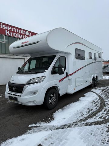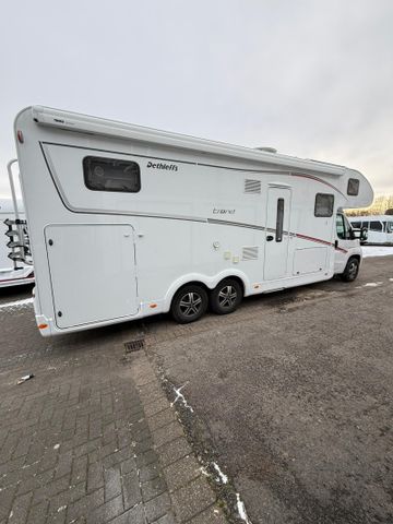 Fiat Ducato MultiJet 180 (2,2 l / 180 PS) Heavy Duty, 9-Gang Wandler-Automatikgetriebe, Chassis-Paket Advance (10" DAB+ Naviceiver inkl. Wireless Apple CarPlay & Android Auto, Navigation und Lenkradfernbedienung (Upgrade zum 7" DAB+ Moniceiver), Digitaler Tacho mit digitalen Anzeigen und großem 7" Display, Wireless Phone Charger in der Mittelkonsole), Family-Paket (Fliegengitter-Aufbautür, Höhe- und Neigeverstellung und Doppelarmlehnen für Fahrer- und Beifahrersitz, Verdunklungsjalousien im Fahrerhaus, Panorama-Dachhaube 70 x 50 cm im Wohnraum, Vorzeltleuchte 12 V, Radioantenne DAB+ im rechten Außenspiegel integriert, Vorbereitung für Radiosystem inkl. Soundpaket im Fahrerhaus, Indirekte Ambientebeleuchtung über den Dachstauschränken), Vorbereitungskit (Vorbereitung Solar, Vorbereitung Dach-Klimaanlage, Vorbereitung SAT-Anlage, Vorbereitung erste Rückfahrkamera, Vorbereitung zweite Rückfahrkamera), All in One Paket 22, Cassettenmarkise Omnistor 6,0 m (manuell), Flachbildschirm 22" HD TV (inkl. DVD-Player, HDMI, DVB-S2-Satellitenreceiver und terrestrischem DVB-T2-Receiver), Automatische HD SAT Anlage 65 Twin, 10" Navigationsgerät , Apple Car Play und Android Auto, Dachlüfter Schlafbereich, Solar 2 x 110 Watt, Solar 2 x 175 Watt, 200 Ah LifePO4 ( 2 x 100 AH ), Starterbatterie neu in 09/2024, Airlineschienen Heckgarage, Wohnwelt La Rocca, Alufelgen Dethleffs 16 Zoll (für 3-Achser), Doppelverglaste Rahmenfenster mit Verdunklung & Mückenschutz, Sicherheitspaket II: Kopfstützen und Beckengurte für Sitzbank entg. Fahrtrichtung, Stauraum-Türe links, Alkovenbett hochklappbar, Rundsitzgruppe (freistehender, starrer Tischfuß und umlaufendes Sitz und Rückenpolster), Dunstabzugshaube (Abluft) mit Zugluft-Stopper, Kühlschrank (142 l) mit integriertem Backofen, Duschrost, Fenster zusätzlich im Badezimmer, Warmwasserheizung mit Warmwasserboiler, automatischem Ablassventil, Absperrventil für den Schlafraum und digitalem Bedienelement, Wärmetauscher für Warmwasserheizung, Dachklimaanlage, Automatische Gasflaschenumschaltung inkl. Crash Sensor, EisEx und Gasfilter, Gassteckdose außen Gasdruck 30 mbar, Fahrradhalter für 4 Fahrräder (Heckmontage), Wohnraumtür mit Fenster inkl. Verdunkelung und Zentralverriegelung (inkl. Fahrerhaustüre), Isofix Kindersitzbefestigung für 3. und 4. Sitzplatz in Fahrtrichtung, Auflastung auf 5.400 kg, Hubstützen hydraulisch LINNEPE, Rauchmelder