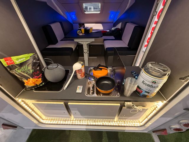 Webasto GasOil Standheizung, Kühlschrank, Heckküche, Große Heckstauklappe, Stoßdämpfer, 100KmH Zulassung, Inkl. Festivalausstattung