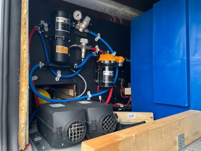 Wohnkabine: Robuster Expeditionsaufbau mit 100mm Dach und Boden , Wände 80mm , Innenausstattung: Festbett mit extra Tür zum Schlafbereich , Dinette, Küche mit Induktion, Bad mit Dusche/Trockentrenntoilette , Autarkie: 4x440Wp und 2x 24V/200A Lithium Ladebooster, Wechselrichter Victron (alles neu in 2024), Wassertanks: Frischwasser 350 Liter Abwasser 200 Liter , Heizung/Klima: Diesel-Standheizung Tigerexped WarmduscherKit (alles neu in 2024), Ausbau von Schreinerhand 04/2025