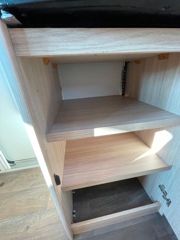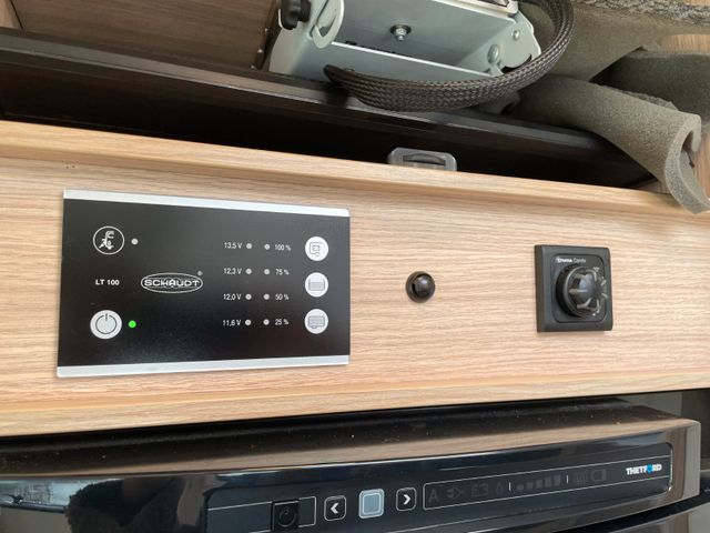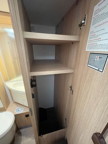 Markise, Anhängerkupplung starr, Fahrradträger, Automatische SAT-Anlage, Fernseher, Rückfahrkamera + Monitor, 1-DIN Radio, Safe unter Beifahrersitz, Heckgarage, Automatikgetriebe