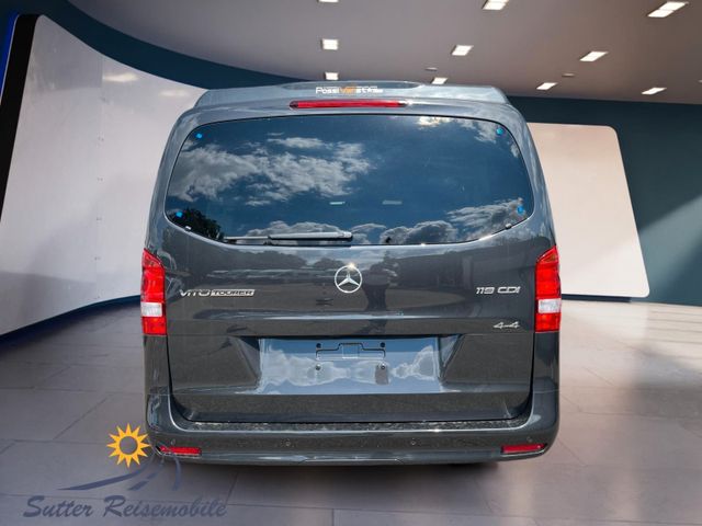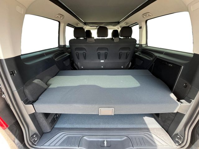Komfort-Liege, Kühlergrill verchromt, Lederlenkrad, Alufelgen 17" 20-Speichen, Park-Paket, Schiebetür links, Winter-Paket, Stoßfänger lackiert, Colorverglasung, Sitzschienensystem, E-Paket, Wohnraumheizung, Verdunkelung, Allrad, Anhängelast 2.500 KG, Graphitgrau Metallic, Aufstelldach in Wagenfarbe lackiert
