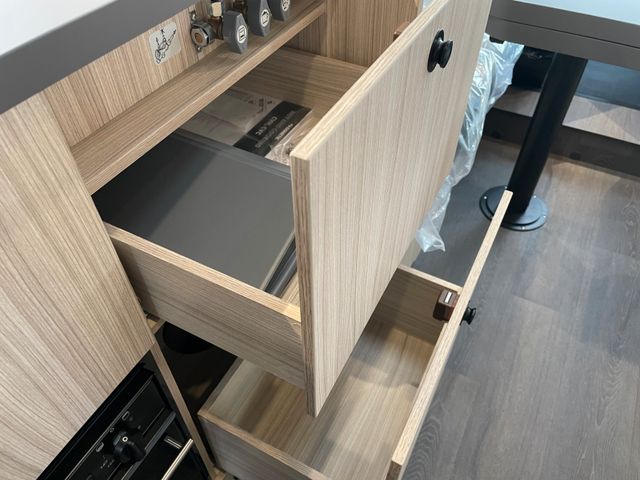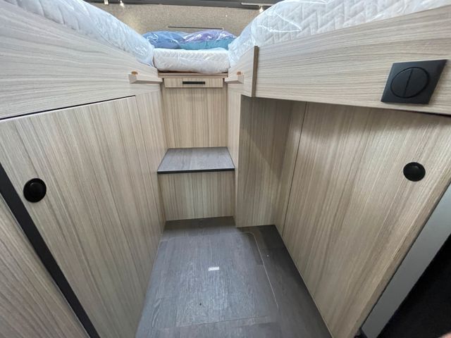 Basisfahrzeug Ford Transit 2.0 EcoBlue 165, Automatik, Faherhaus schwarz metallic lackiert, Nebelscheinwerfer, elektrische Parkbremse, Notbremsassistent, Verkehrszeichenerkennung, Einparkhilfe vorne, Spurhalteassistent, Reifendruckkontrollsystem, Markise, Solar-Anlage, 12'' Audiosystem SYNC IV mit 5G modem, Rückfahrkamera, 16'' Alufelgen, Lederlenkrad, Eingangstür mit Fenster und Moskitonetz, Isofix-Kindersitz-Befestigung, Edelstahlkocher mit elektrischer Zündung, manuelle Klimaanlage, Tempomat und Geschwindigkeitsregler, Außenspiegel elektrisch und beheizbar, 90 Liter Kraftstofftank, Fahrerhausverdunklung Plissee, Sicherheitsgasregler MonoControl CS + Gasfilter, Ganzjahresreifen mit Schneeflockensymbol, Radiovorbereitung, Tablet- und Getränkehalter, Zentralverriegelung inkl. Aufbautür, Panorama Dachfenster Front, Ladebooster, 100 Ah AGM-Batterie, Garagentüren beidseitig, 74 x 116 cm, Garagenmaße 95x200x90 cm, Kassettentoilette, Truma Combi 4, Truma CP Plus, Frischwassertank 100 l, Abwassertank 88 l mit elektrischem Ablassventil, großer Kühlschrank mit 157 l Inhalt, Seitz-Rahmenfenster, Sat-Vorbereitung