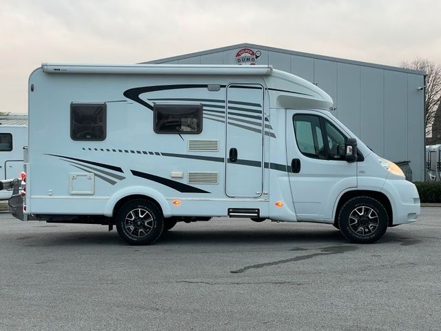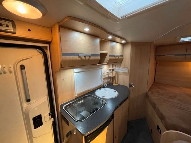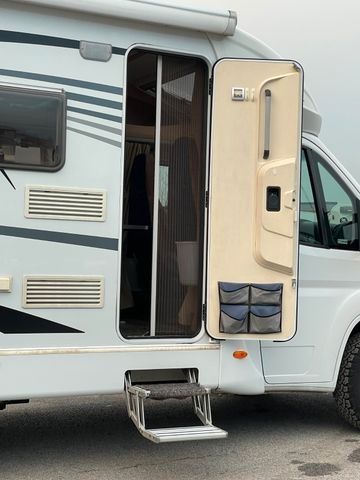 Toilettenraumfenster), Dachhaube in Milchplexiglas mit Fliegenschutz, Elektrische Trittstufe, Verzurrösen und Innenbeleuchtung (modellabhängig), Schwallwasserdichtungen an den Außenstauraumklappen und Türen, Zuladung Heckgarage bis zu 150 kg