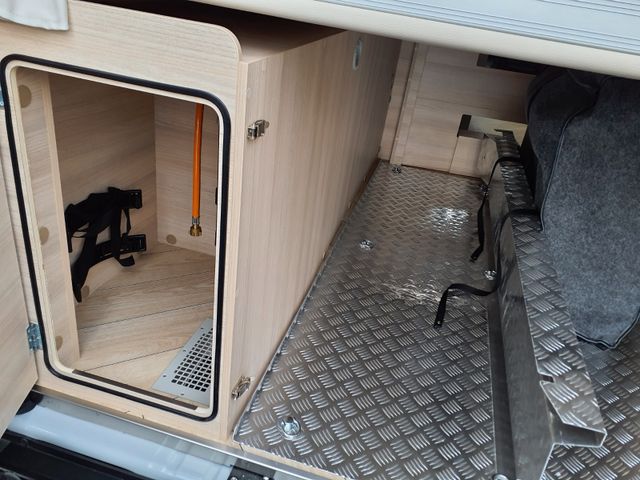16” Alufelgen schwarz, Dieselheizung während der Fahrt benutzbar, Nebelscheinwerfer, Schonbezüge für Fahrerhaussitze, Stoßstange in Wagenfarbe lackiert, offenes Fahrerhaus, Campovolo-grau, Kleiderschrank, verstärkte Isolierung "VPS", Schlafmöglichkeiten in der Dinette, Markise, Solarpanel, Außenbeleuchtung der Eingangstür, Fliegengitter, Fahrerhausverdunkelung, Lederlenkrad, verchromte Lüftungsöffnungen