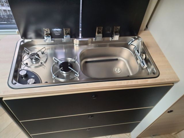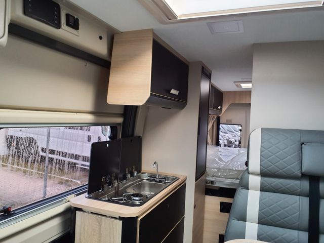 Doppelverglasung mit Kombirollos , Höhenverstellbare Drehsitze mit zwei Armlehnen, Klimaanlage Fahrerhaus manuell, Panorama-Dachhaube (oder 2 Dachhauben),TV-Vorbereitung, Tempomat + Geschwindigkeitsbegrenzer , USB-Anschlussh, Vorbereitung Solarpanel, Vorverkabelung Rückfahrkamera, Waschraum mit Fenster, Gasheizung, Stahlfelgen Dark Grey 16'', ECO Paket (Start/ Stop-System inkl. smarter Lichtmaschine), Thermo-Innenrollos im Fahrerhaus