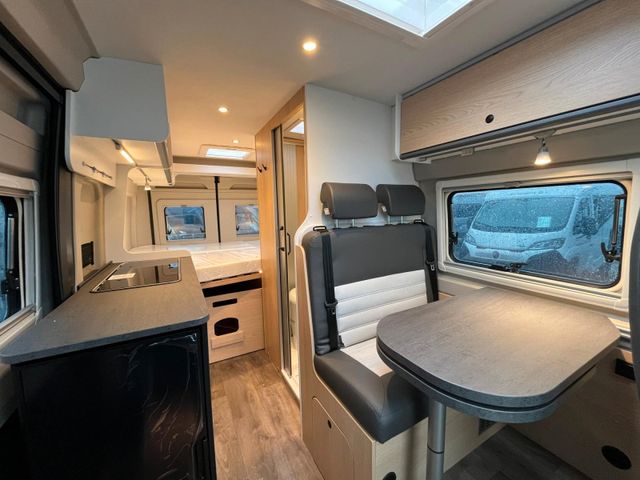 Fiat Ducato 3.500 kg | 2.2 | 103 kW | 140 PS Euro 6 | 6-Gang-Schaltgetriebe, Fiat Weiß, Adventure Beklebung, Wohnwelt Adventure, LED Beleuchtung Dachschrank, Dachstauschrank Heck umlaufend, Skyview, Rahmenfenster, Variobad, Markise (schwarz), Panoramadachhaube 70 x 50 cm, Duschausstattung, Fenster im Bad, Kleiderstange in der Nasszelle, Breite Einstiegsstufe, Drehplatte für Tischerweiterung an der Sitzgruppe, Stoßfänger lackiert, Skid Plate Schwarz, Nebelscheinwerfer, Lenkrad & Schaltknauf in Lederausführung, Luftauslässe mit Applikationen Silber (Techno-Trim), 16" Alufelgen Bi-ColorDetails