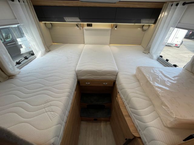 Alarmanlage, Kühlschranklüfter, Victron Ladebooster, Hochwertige Matratzen, 9" Pioneer Radio, Markise, Außenschublade in der Seitenschürze, Fiat Alu Pack Lenkrad, Elektrische Trittstufe, Außendusche, Truma Combi 6 E Heizung inkl. neuem Truma Display, Elektrische Handbremse, Aguti Komfortsitze, 2 × TV inkl. automatischer SAT-Anlage, 4 × 100 Ah Lithium-Batterien, 1.500 W Wechselrichter, 600 W Solaranlage inkl. Victron MPPT, Klimaanlage, 3 zusätzliche Dachfenster, Litec Voll-LED-Scheinwerfer
