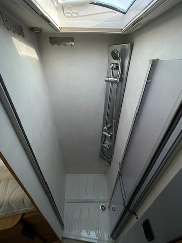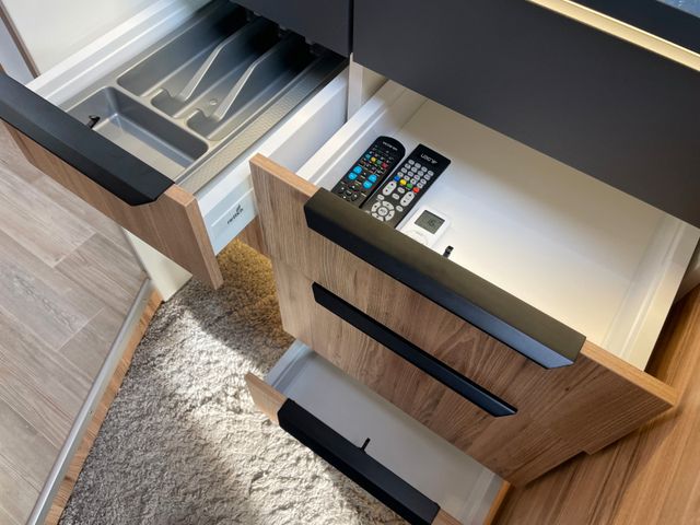 Praktische Details wie elektrische Trittstufe, Außendusche, Markise und Außenschublade in der Seitenschürze runden das Gesamtpaket ab.