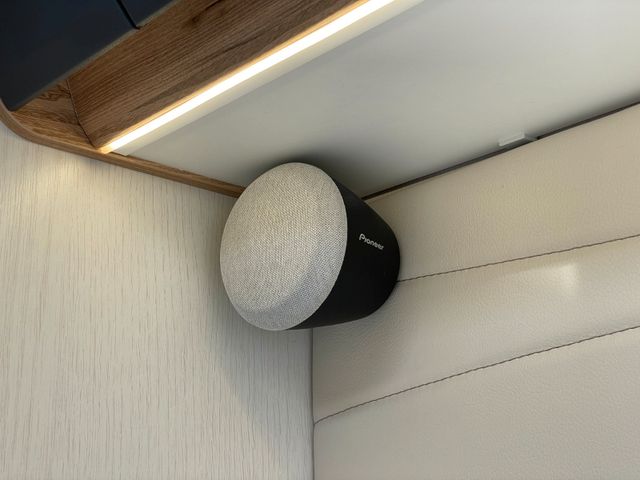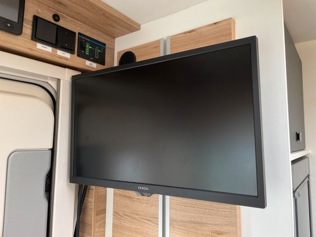 Moderne Unterhaltung bieten zwei Fernseher mit automatischer SAT-Anlage und ein 9" Pioneer Radio.