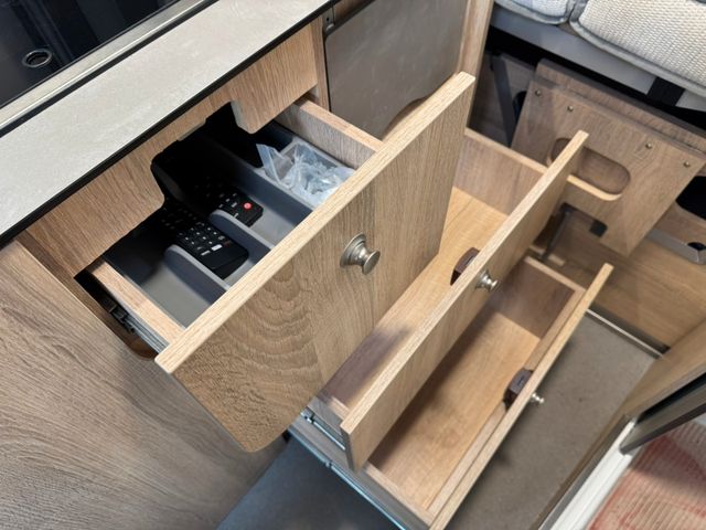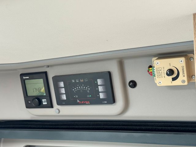 Elektrik & Multimedia:2 x 100 Wp GreenAkku Solarmodul, Victron Energy Smart Solar Laderegler, Victron SmartShunt Stromanzeige, Connex IoT Level Controller eco V2, Wechselrichter Berger 500 W, LiFePO4 Supervolt Polar 150 Ah mit BMS, Pioneer DMH-A240DAB 2 DIN Monitor, Emphase 2 Lautsprecher + 2 Canton RFK, Shark EcoW LTE Antenne