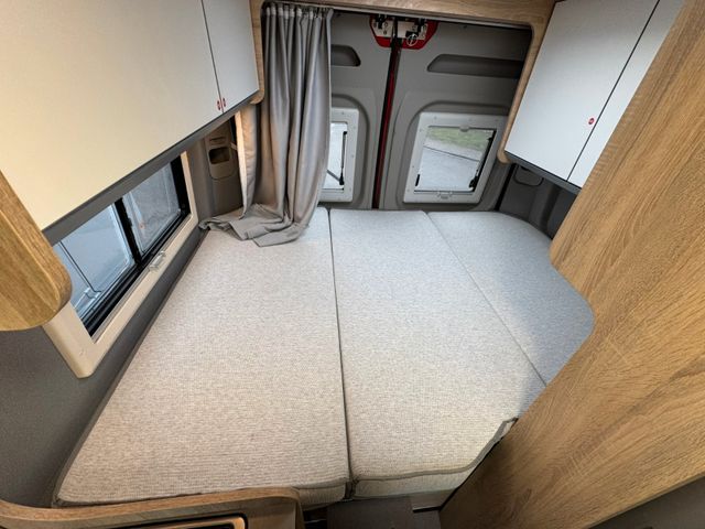 Das Fahrzeug aus 2021 überzeugt mit sparsamen 140 PS, moderner Lithium-Bordtechnik, Solaranlage sowie zahlreichen Camping-Upgrades wie Markise, Fahrradträger und Wechselrichter. Ideal für Paare oder aktive Reisende, die ein wendiges Reisemobil mit umfangreicher Autarkie suchen.