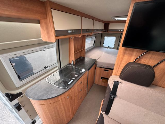 Serienausstattung Summit 600 Plus Light, Lackierung Schnee-Weiß, Wohnwelt H-Line Original, Alufelgen „Light“ 16 Zoll, Zusätzliche Bordbatterie 95 Ah, Truma Bedienteil CP Plus, Anhängerkupplung, Außendusche, Markise, Rückfahrkamera, 2-DIN Radio mit Freisprecheinrichtung, Fest verbaute Gasflasche mit Außenanschluss