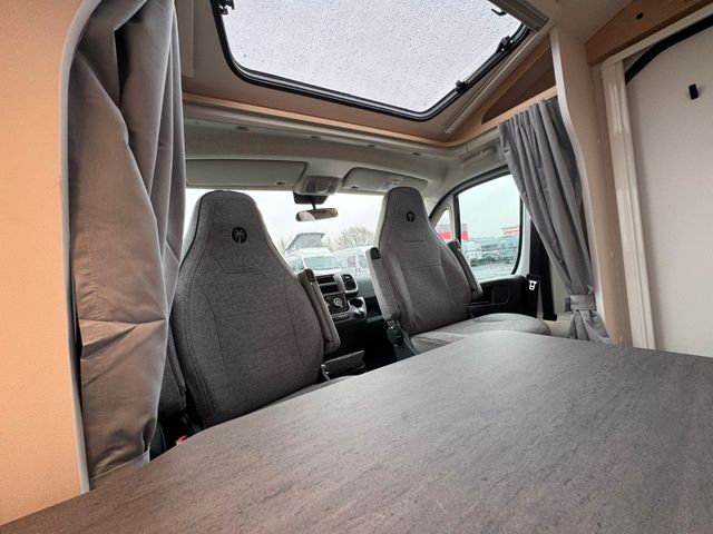 Der Sunlight V 69 Adventure Edition ist ein besonders attraktives Sondermodell mit umfangreicher Serienausstattung und markanter Adventure-Optik. Dieses Fahrzeug steht auf dem Citroën 3,5t-Chassis mit 140 PS und bietet damit einen deutlichen Preisvorteil gegenüber der Fiat-Variante, ohne Abstriche bei Komfort oder Fahrleistung. Im Heck befindet sich ein komfortables Queensbett mit beidseitigem Zugang, das für hohen Schlafkomfort und ein großzügiges Raumgefühl sorgt – ein echtes Highlight in dieser Fahrzeugklasse. Ein idealer Grundriss für Paare, die Wert auf Komfort, modernes Design und ein ausgezeichnetes Preis-Leistungs-Verhältnis legen.