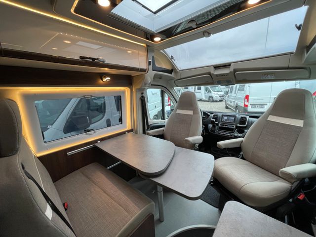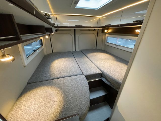H-Line Ausstattung, Summit 640 Prime Grundriss, 9-Gang-Automatikgetriebe, All-In-Paket, Holzdekor Palisander, Wohnwelt H-Line „Mindoro“, Klimaautomatik Fahrerhaus, Lederlenkrad, Elektrische Handbremse, Nebelscheinwerfer, Bettverbreiterung 3. Schlafplatz quer, Tisch mit Ausdrehteil, Truma Bedienteil iNet X, Truma Combi 6E (Gas/Elektro), Elektrisches Abwasserventil, Winterpaket, Fenster im Toilettenfenster, Schließhilfe Softlock für seitliche Schiebetür, Länderausstattung Norwegen, Markise, Kenwood 8021, Rückfahrkamera