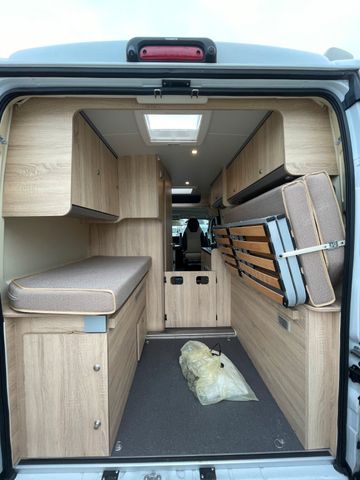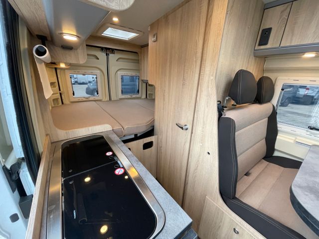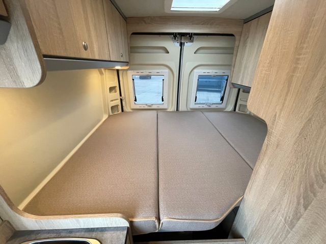 Marke: Citroën, Modell: Jumper, Chassis: Citroën 35 Light L2H2, Motor: 2,0 l HDI Diesel, Leistung: 96 kW (130 PS), Hubraum: 1.998 ccm, Getriebe: Schaltgetriebe (manuell), Erstzulassung: 28.02.2017, Sitzplätze: 4, Vorbesitzer: 2, Schlafplätze / Bettenart: Doppelbett