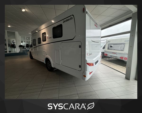 Modell 2023, Motor / Chassis: Citroen Jumper BlueHDi 140, Leistung: 103 kW / 140 PS, Getriebe: Schaltgetriebe, zul. Gesamtgewicht: 3499 kg, Bett(en): Doppelbett, Kingsizebett, Hubbett, Sitzgruppe: Seitensitzgruppe, Polster: Metropolitan, Holzdekor: Rosario Cherry