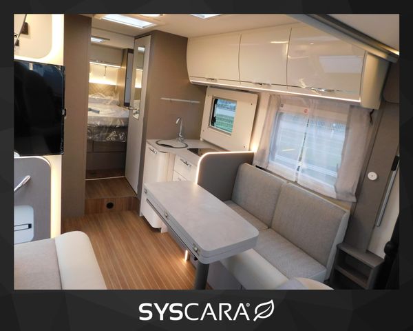 Modell 2024, Motor / Chassis: Fiat Ducato 2,2 l MultiJet , Leistung: 103 kW / 140 PS, Getriebe: Automatik, Kilometerstand: 50 km, zul. Gesamtgewicht: 3650 kg, Bett(en): Kingsizebett, Hubbett, Sitzgruppe: Seitensitzgruppe