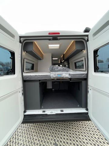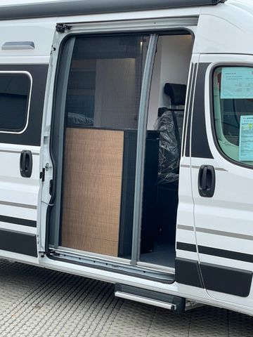 Dieses Modell kommt bereits ab Werk mit einer beeindruckenden Serienausstattung zu Ihnen: Von der Solar-Anlage für autarkes Stehen bis hin zur Markise für entspannte Stunden im Schatten ist bereits alles inklusive. Das Interieur überzeugt mit dem wohnlichen Polster „Arno“ und einer hochwertigen Faltverdunkelung.