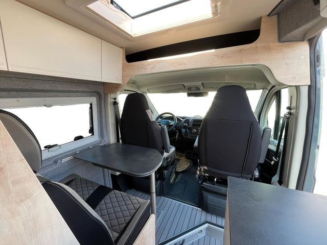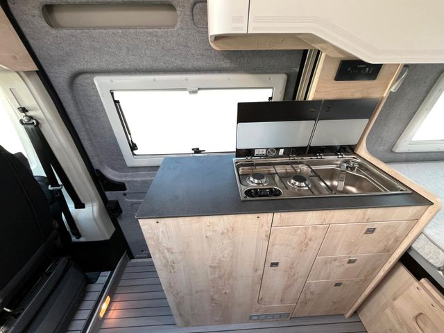 ABS, ESP und ASR, Alufelgen 16" schwarz/ silber bei light Chassis, DAB Antenne und Radiovorbereitung, Klima manuell, Lederlenkrad & Schaltknauf, Spiegel elektrisch verstell-/beheizbar, Tagfahrlicht LED, Fahrer- und Beifahrerairbag, 90l Kraftstofftank, Chairmansitze im Fahrerhaus inkl. Drehkonsole, 3.500kg Light Chassis, USB Anschluss im Armaturenbrett, Chromringe im Kombiinstrument, Multifunktionslenkrad und Tempomat, Getränkehalter & Smartphonefach, Vorbereitung für Rückfahrkamera, 16A Ladegerät, Ladebooster 25A, Lithium- Aufbaubatterie mit 100Ah, Truma Inet X Bedienteil, Heizung Truma C4 Gas, LED Außenlichtleiste, Trittstufe elektrisch, Sitzbezug Stoff grau, Hochfeste Tisch- und Arbeitsplatte aus HPL, Dachhaube 70x50cm vorne, Dachhaube 40x40cm hinten, 5 Seitz Rahmenfenster, Schiebetür Fliegenschutztür, Rollo Verdunkelung Fahrerhaus, Steckdosen 2x 230V, 1x USB, 1x12V, Möbeldesign Ahorn, Oberschrankklappen Weiß matt CPL inkl. Zierstreifen in Akzentfarbe, Kompressorkühlschrank, Softtouch Wandverkleidung im Heckbereich (ausg. Vario Kids), Durchgehende Hecktürverkleidung, Ablagefächer in Schiebe- und Hecktür