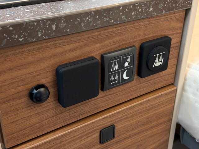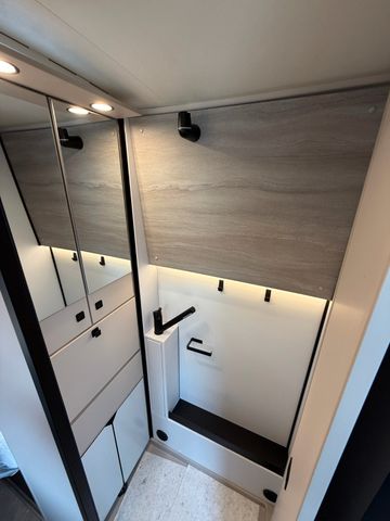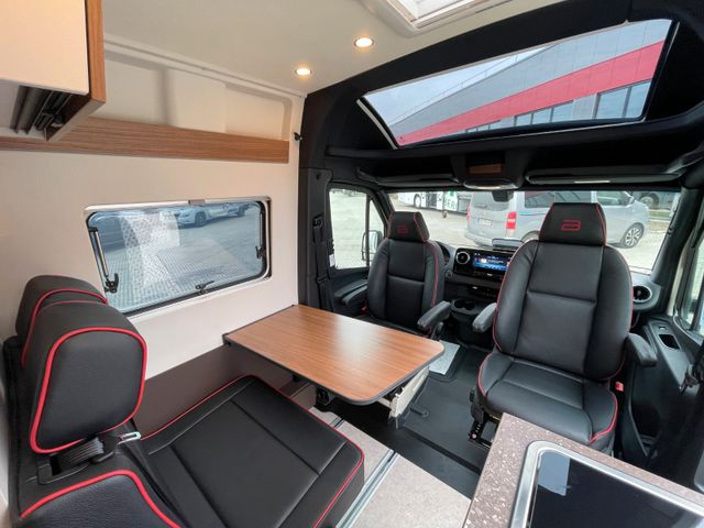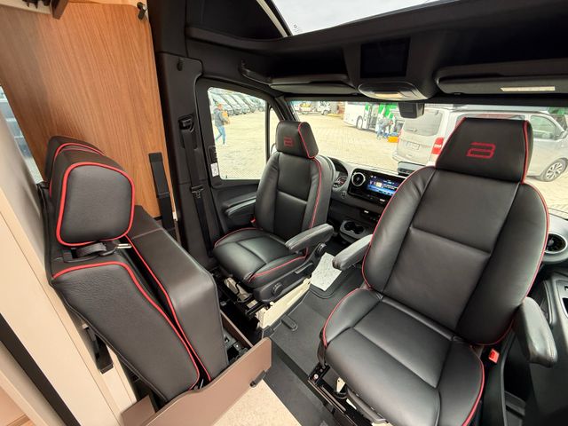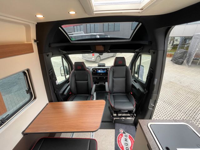 Lackierung Perlweiß, Panorama-Dachhaube Front, Auswahl Korpus Jura, Auswahl Front Oak, Polster Black Leather Pure, Bürstner Connect, Chassis Komfort Paket (Klappdeckel für Ablagefach links und rechts, Cupholder, Ladepaket für Instrumentaltafel, Ablage für Smartphones, Feststellbremse elektrisch, Fernlicht-Assistent, Smartphone-Integrationspaket), Automatik Paket (Distronic, Lederlenkrad, Verkehrzeichen-Assistent), Komfort-Packet Aufbau ( Innenverkleidung aus Stoff, Arbeitsplattenerweiterung Küche, Aufbaubatterie Lithium 100AH, Fahrerhausverdunkelung, Casettenplissee Front- und Seitenscheiben, Rahmenfenster, Fliegenschutzplissee für Schiebetür, Zusatzmatratze für Liegewiese, Lichtpaket )