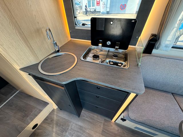 Fiat Ducato 3.500 kg 2.2 Multijet | 103 kW | 140 PS Euro 6, Chassisfarbe Weiß,, Wohnwelt Performance Grey, 90 L Dieseltank, Abwassertank isoliert, Fenster in Fronthaube, Hubbett, Großer Kühlschrank, Truma Combi 6, Basic Paket, Doppel-DIN Naveciever Kenwood mit Apple CarPlay / Android Auto, Markise, Fahrradträger , Solar