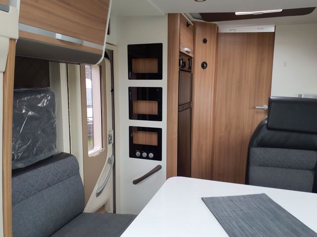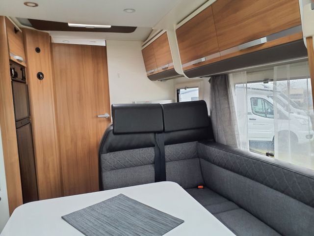 Der Matrix 670 SL glänzt mit der gemütlichen L-Sitzgruppe, einer geräumigen Küche mit großem Absorber-Kühlschrank, abgetrennter Dusche und gemütlichem Bett. Daneben steht ein Hubbett zur Verfügung.