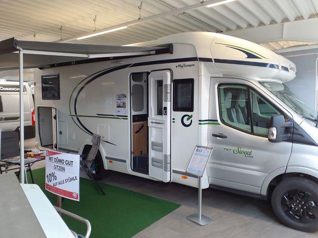 Chausson 797 der Sweet Line vor – ein komfortables Reisemobil auf Ford-Basis mit durchdachtem Raumkonzept.