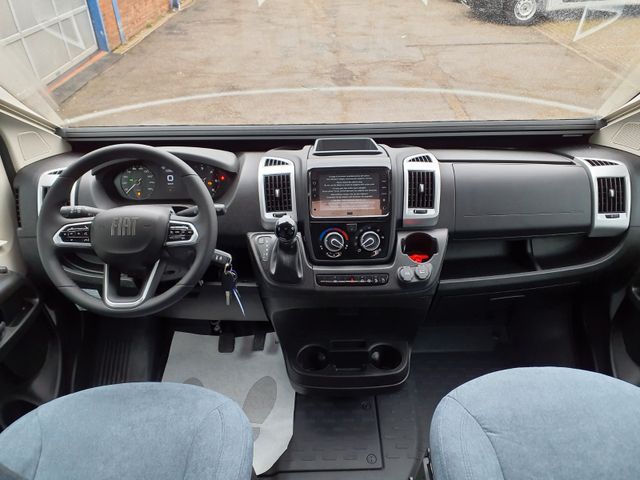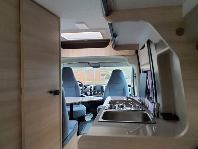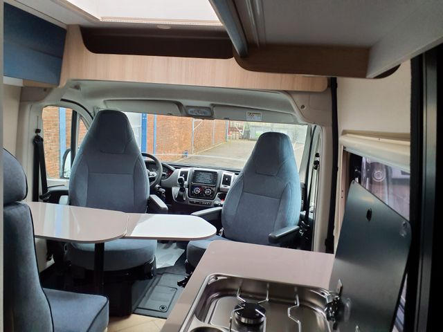 Doppelverglasung mit Kombirollos, Fix and Go, Ganzjahresreifen, Höhenverstellbare Drehsitze mit zwei Armlehnen, Klimaautomatik im Fahrerhaus, TV-Vorbereitung, Tempomat + Geschwindigkeitsbegrenzer, Thermo-Innenrollos im Fahrerhaus, Traction +, USB-Anschluss/USB-C, Vorbereitung Solarpanel, Vorverkabelung Rückfahrkamera, Waschraum mit Fenster, Panorama-Dachhaube (oder 2 Dachhauben) ∗, Ausstellfenster am Heck, Gasheizung, Stahlfelgen mit Radkappen 15" grau, Weiß,