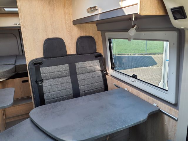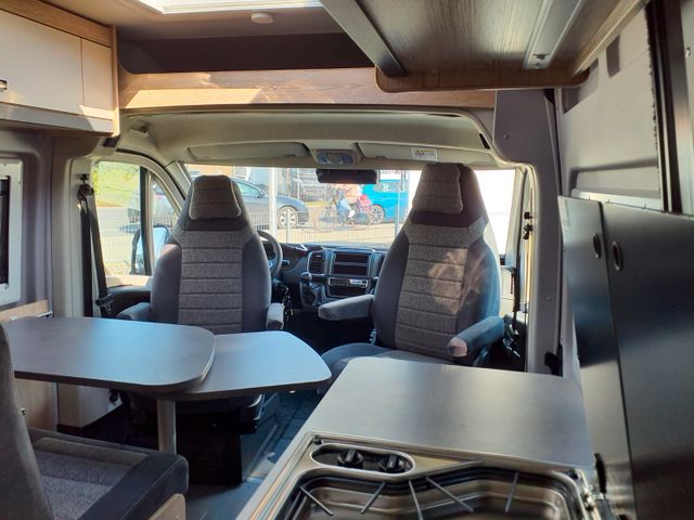Holzdekor EicheKupfer, Polster Samba, Tisch mit Ausdrehteil, Truma Bedienteil iNet X, Markise 4m, Solaranlage 200 Watt, Lithiumbatterie 100AH, Rain Tec Regenrinne schwarz dimmbar