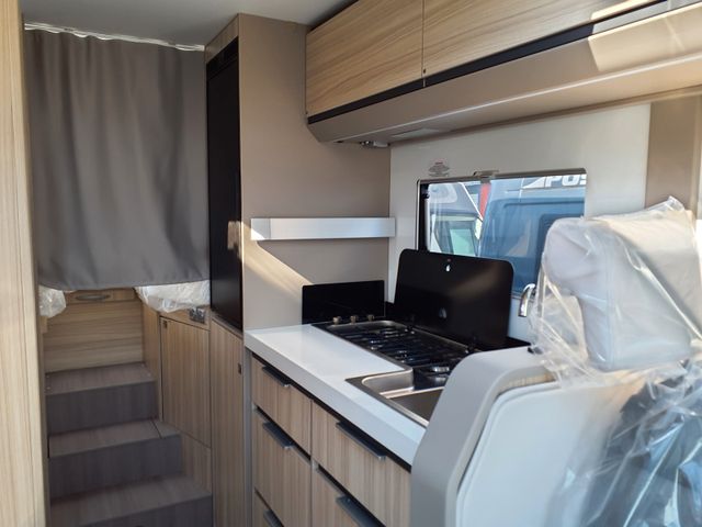 140 Multijet, 103kW, 140PS, Automatikgetriebe, Chassis 3,5 t, Airbag Fahrer + Beifahrer, ABS, ASR, ESP, Nebelscheinwerfer, 16" Leichtmetall-Felgen, LED-Multifunktionsrückleuchten, Multifunktionslenkrad in Lederoptik und Antenne im Außenspiegel, Klimaanlage Fahrerhaus, Plissee-Verdunkelung Fahrerhaus, Komfort-Fahrerhaussitze mit Armlehnen im 60Y Design, Breite Wohnraum-Eingangstür mit Zentralverriegelung, Fenster und Fliegenschutz, Exklusive 60Y Polsterausstattung, Polster ‘Arno’ optional, Tisch Weiß, optional Anthrazit, Abdeck-Holzbrett 60Y für Spüle, Evopore Schaumstoffmatratze, TV-Halterung, DC/DC-Wandler (Lichtmaschinen-Booster), Abwassertank isoliert, beheizt, Kurbelstützen