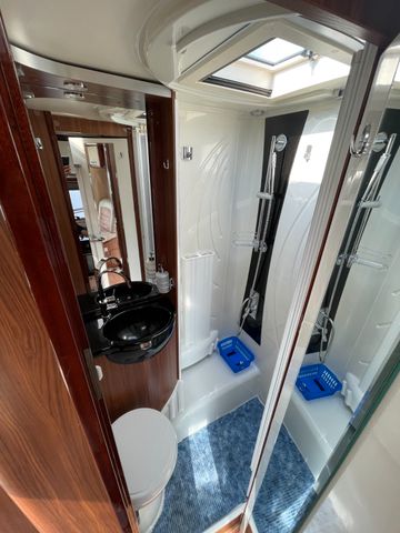 Profil gut, Lackierung Silbergrau Metallic, Klimaanlage FH, Tempomat, Multifunktionslenkrad, Pilotensitze, Teilledersitze, Alarmanlage, Navi mobil von KD, Rückfahrkamera ( Bild über Navi, wenn Schalter links neben Lenkrad aktiv), SAT mit TV, Markise, Solar, Alde Warmwasserheizung, 2x AGM Aufbaubatterie, Wechselrichter, Remis Verdunklung, Ambientebeleuchtung LED, SOG, Backofen, Frischwasser und Abwassertank beheizt, Dunstabzugshaube, Duo Control, Heckstützen Manuell, Luftfederung HA, Panoramahaube